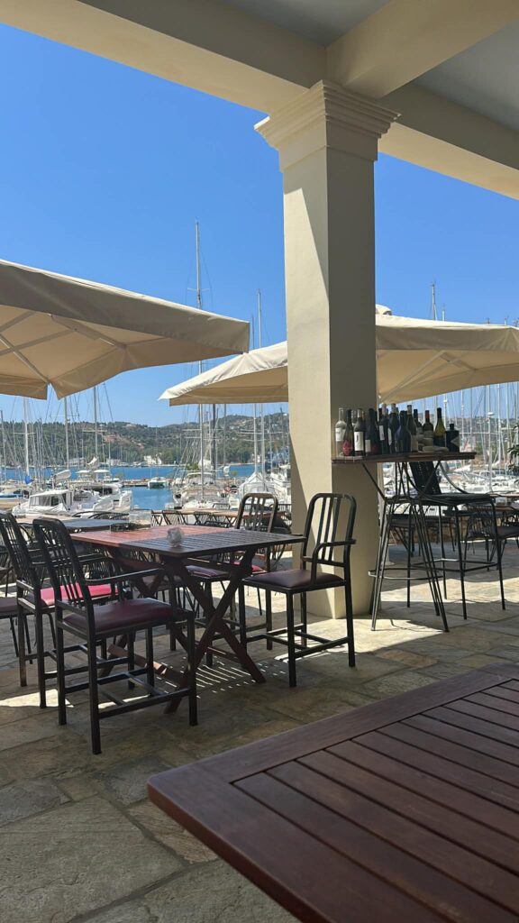 Η εμπειρία ολοκληρώνεται με τη μοναδική τοποθεσία του εστιατορίου. Οι επισκέπτες απολαμβάνουν το γεύμα ή το δείπνο τους σε απόσταση αναπνοής από το νερό, παρακολουθώντας το ηλιοβασίλεμα να αντανακλάται στη Μαρίνα.